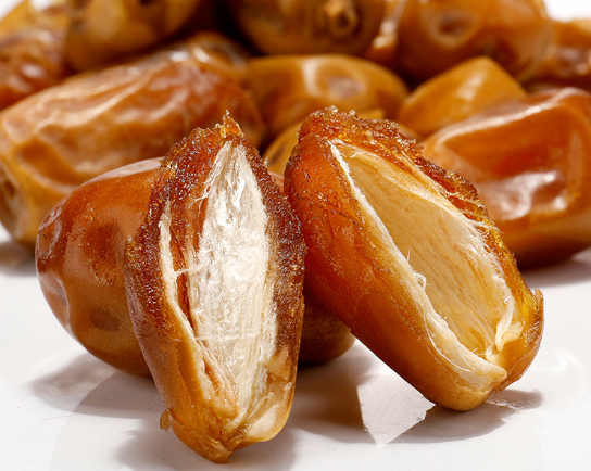 伊拉克蜜枣是金黄色的,非常粘,但不粘牙。枣核长圆,两头尖尖,核上还有一道沟槽,枣核与枣肉很容易分离。蜜枣肉质绵软,嚼起来劲头十足,口感非常甜。