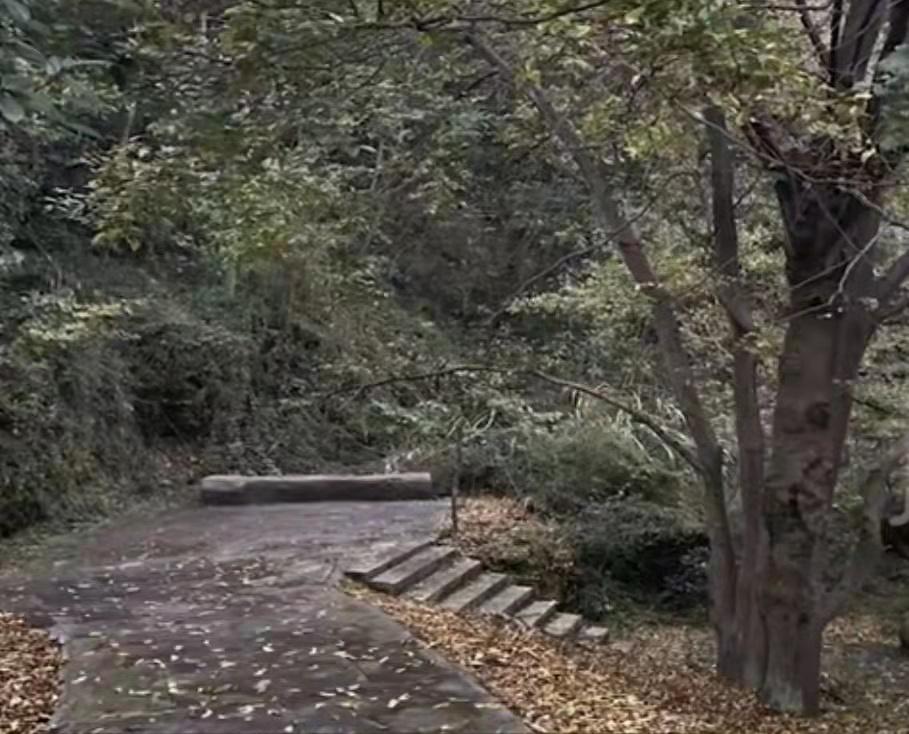 公园入口处和出口处有电子监控。公园石阶的两旁树木丛生,如果不顺着石阶的道路向前看,左右两边全被树木杂草挡住视线。